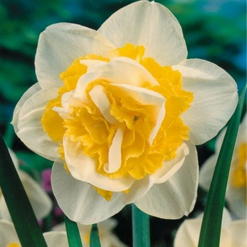 Привлекательный махровый нарцисс Unique по праву можно назвать уникальным. Нижние белые лепесточки слегка прозрачные и густая ажурная коронка ярко-желтого оттенка производит незабываемое впечатление. Одинаково шикарно смотрится на клумбах приусадебного участка и в парковых зонах, в композициях ландшафтного дизайна и букетах.