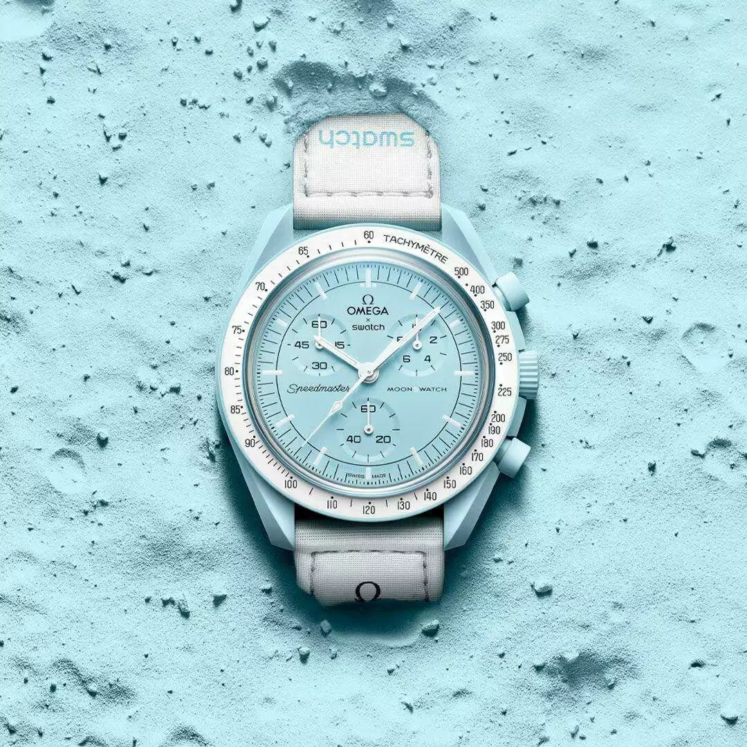 Дизайн каждой модели часов вдохновлен планетой или небесным телом в Солнечной системе. На всех циферблатах счетчики расположены так же, как в классических хронографах Swatch. Они используют тот же кварцевый калибр, что позволяет расположить стрелки таким образом. Что выводит эту коллекцию на орбиту, так это сочетание инновационного материала Swatch BIOCERAMIC с ключевыми элементами дизайна OMEGA Speedmaster Moonwatch. Водонепроницаемость в этом случае составляет 3 бара или 30 метров. Это означает, что фактическая водостойкость позволяет противостоять брызгам при мытье рук. Ремешок на липучке очень удобен и идеально подходит для ежедневного ношения.