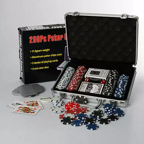 Фотография 1 товарной позиции интернет-магазина детских игрушек www.smarttoys.com.ua Настільна гра M 2777 покер, 200 фішок, 2 колоди карт, кубики, алюм. валіза, 30-24-8 см