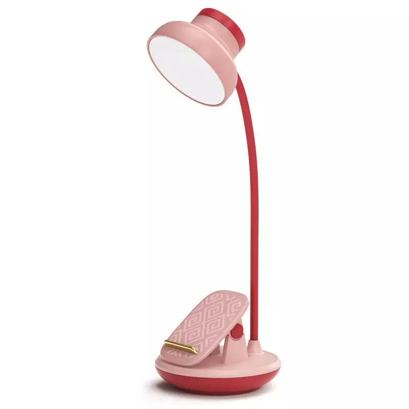Настільна лампа GL-565 на прищіпці з підставкою для телефону, рожева