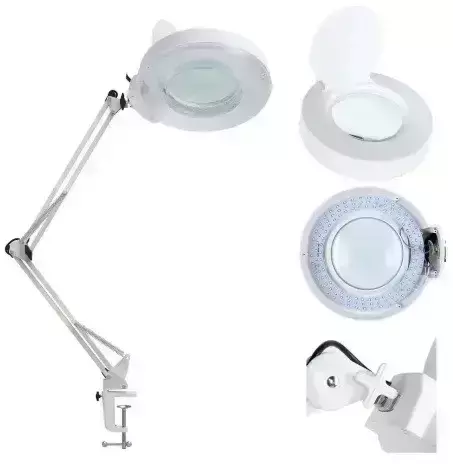 Настільна LED лампа лупа з лінзою на струбціні