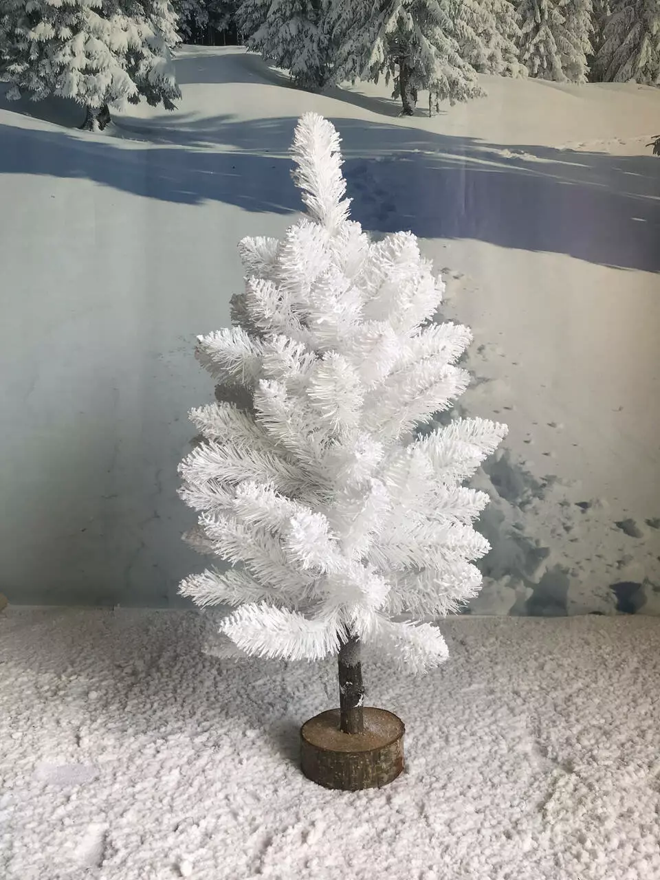 Стильна біла ялинка HVOYA Elegant на пні висотою 65 см допоможе створити оригінальний і креативний дизайн святкового інтер'єру.