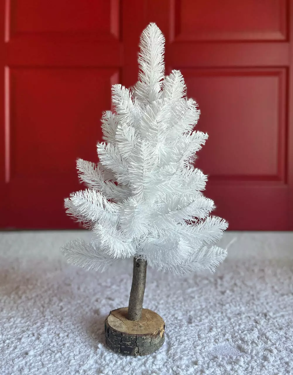 Настільна штучна ялинка Elegant 65 см на пеньочку біла