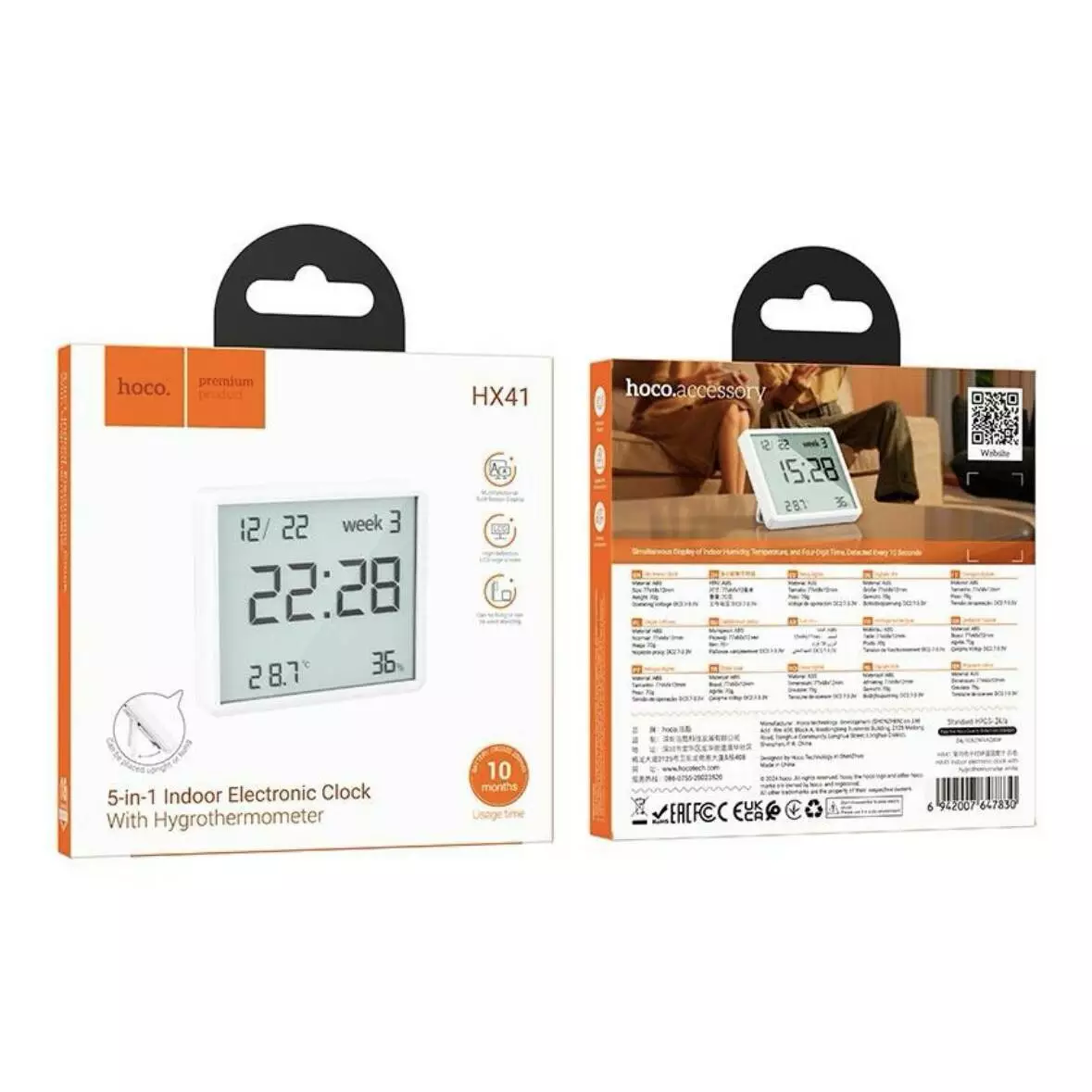 Настільний електронний годинник Hoco HX41 з гігрометром та термометром - це багатофункціональний компактний пристрій, який дозволяє одночасно контролювати температуру, рівень вологості та поточний час у приміщенні. Завдяки поєднанню годинника, термометра та гігрометра, модель Hoco HX41 стане зручним помічником для створення комфортного мікроклімату вдома, в офісі або інших приміщеннях. Чіткий LCD-екран забезпечує легке зчитування інформації, а регулярне оновлення даних кожні 15 секунд гарантує їх актуальність. Компактний розмір і стильний дизайн дозволяють легко розмістити годинник на столі, полиці або тумбі.