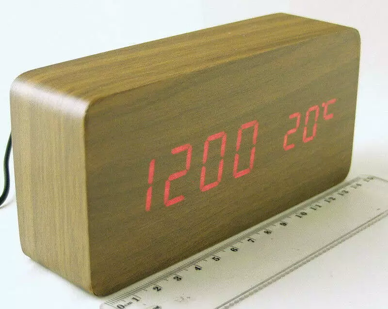 Цифровий годинник прямокутний форми з дерева
