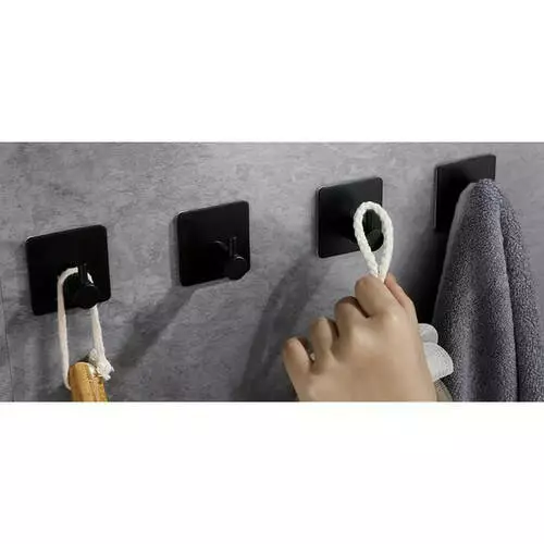 СТІЙКІСТЬ ДО ВОЛОГИ – завдяки порошковому фарбуванню гачки стійкі до вологи та корозії, що робить їх ідеальними для використання у ванних кімнатах із високим рівнем вологості. Монтажна стрічка спеціально розроблена для надійного тримання навіть у вологих приміщеннях.