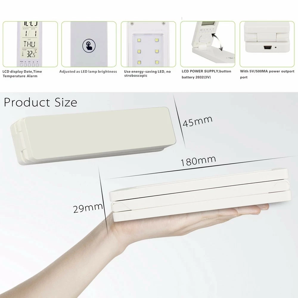 Настольная LED лампа аккумуляторная 18LED/ Часы+Дата+Температура/ ЗУ MicroUSB