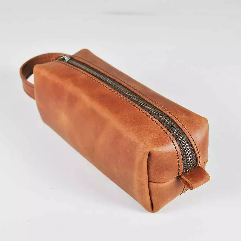 Шкіряний несесер скромного розміру задовольнить потреби у необхідних невеликих речах у дорозі чи подорожі.