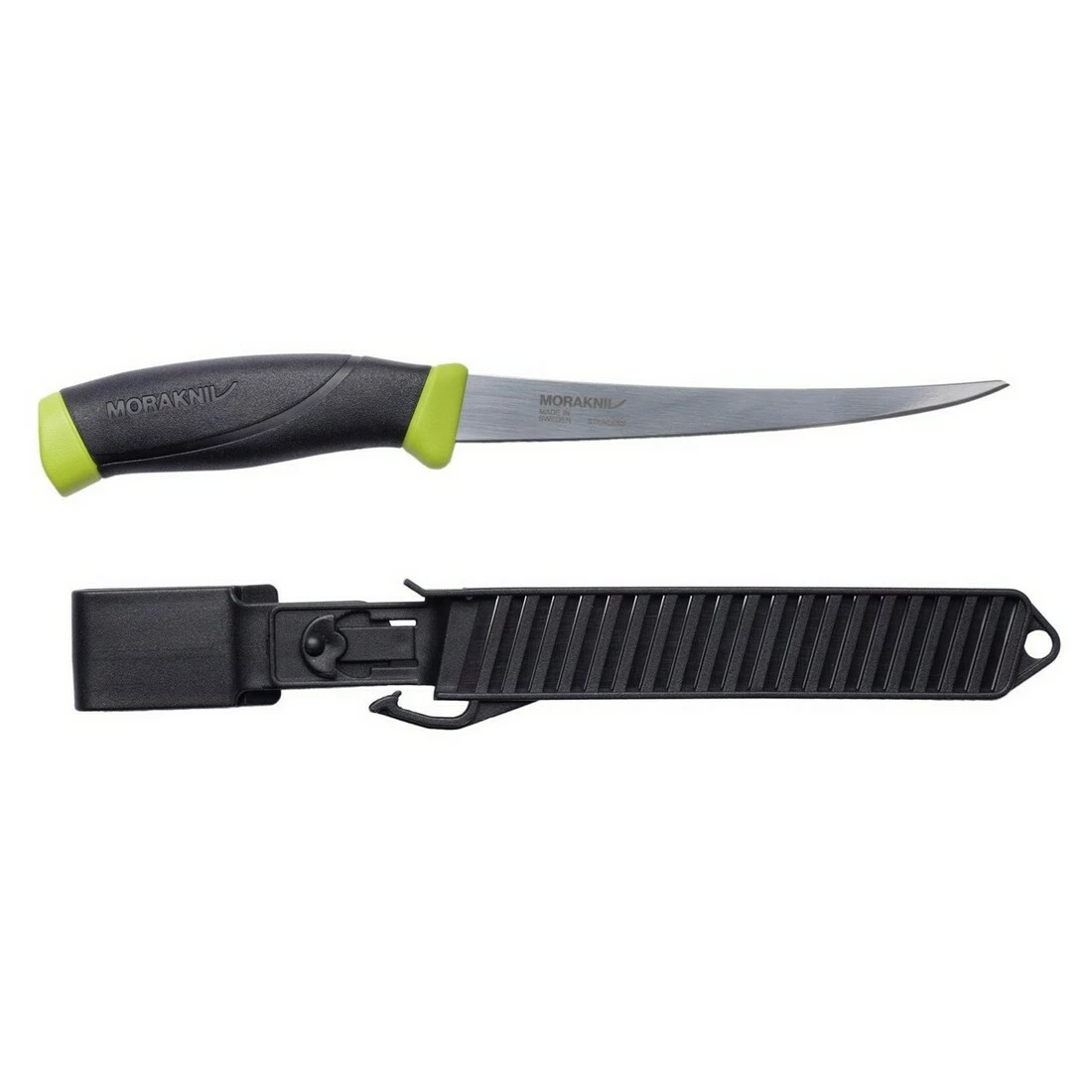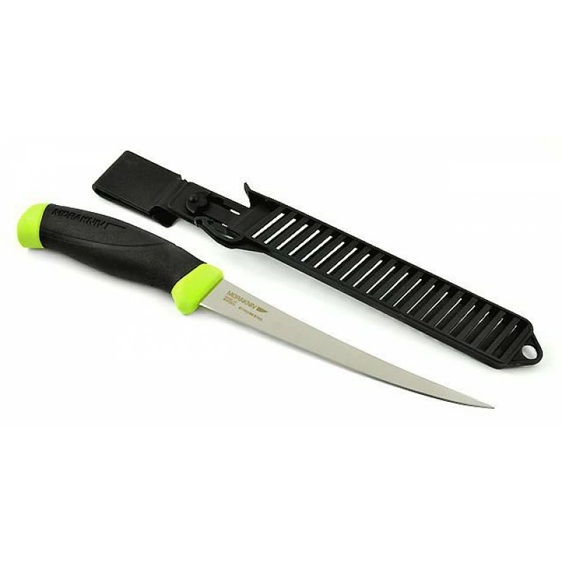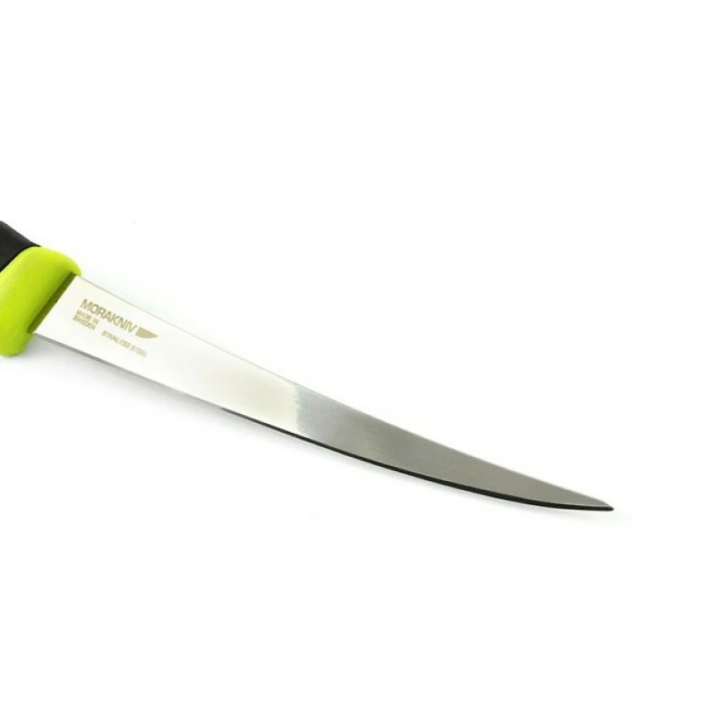 Ніж Morakniv Fishing Comfort Fillet 155 має лезо спеціальної форми, як раз і зумовила застосування ножа – для філейної оброблення. Довжина леза представленого ножа становить 155 мм, про що і говорять цифри в назві моделі. Загальна довжина – 27 см, а товщина клинка в обухові складає всього 1.9 мм.