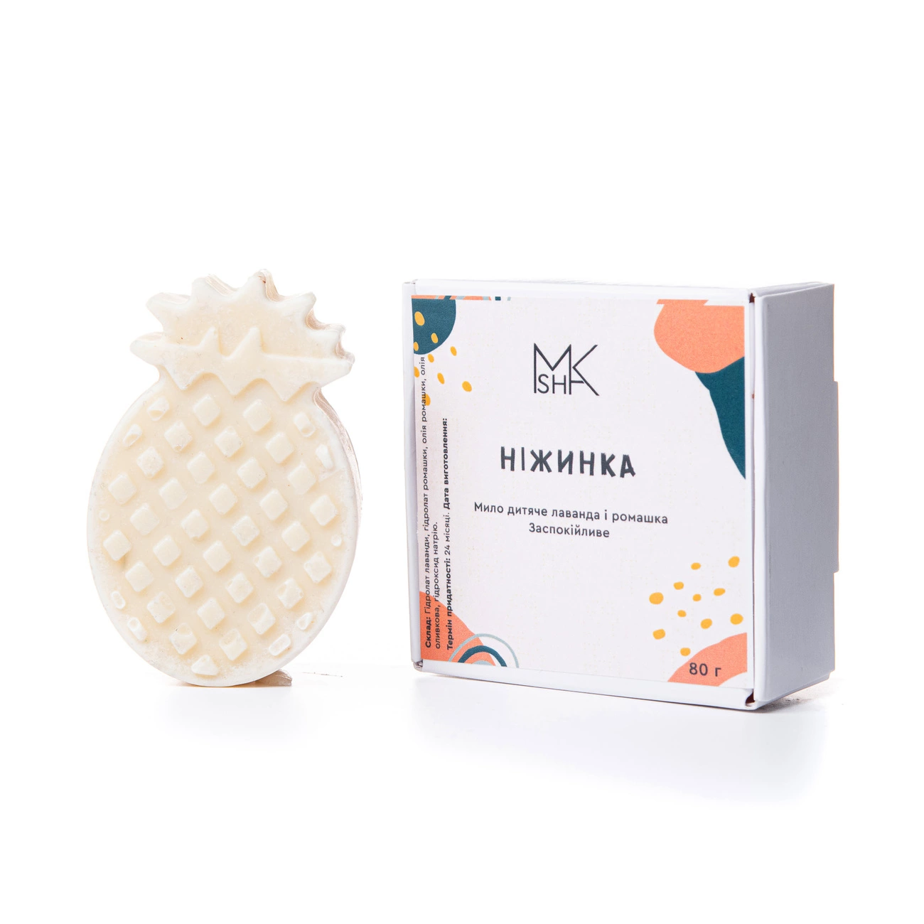 Склад: гідролат лаванди, гідролат ромашки, олія ромашки, олія оливкова, гідроксид натрію.