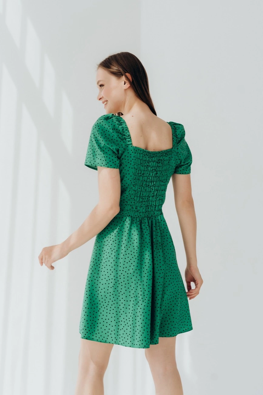 Ніжна міні сукня з коротким рукавом. Фасон підкреслює талію,