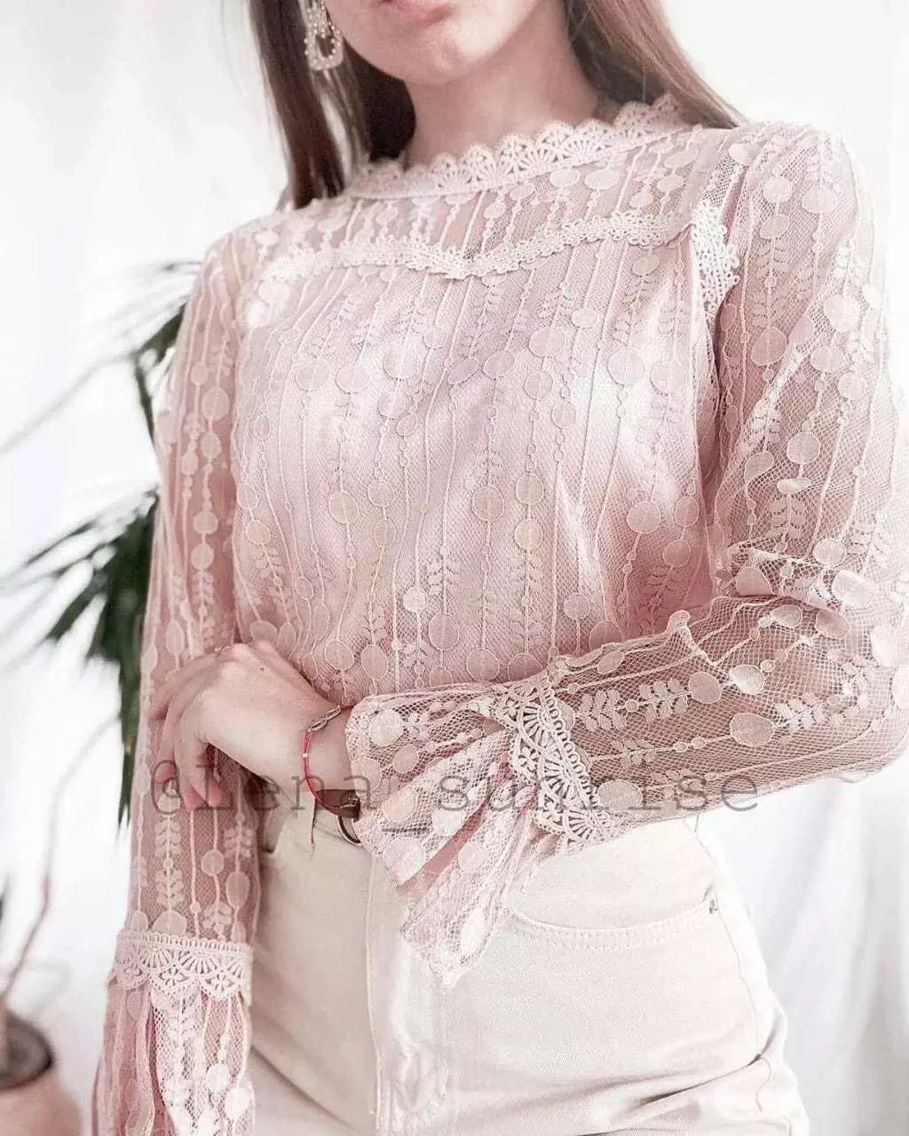 Ніжна жіноча блуза мереживо на підкладці 1498