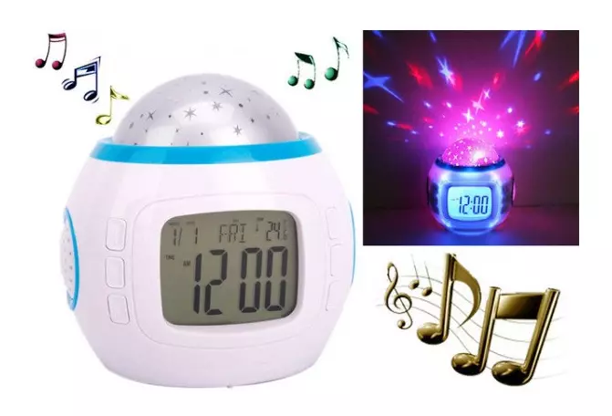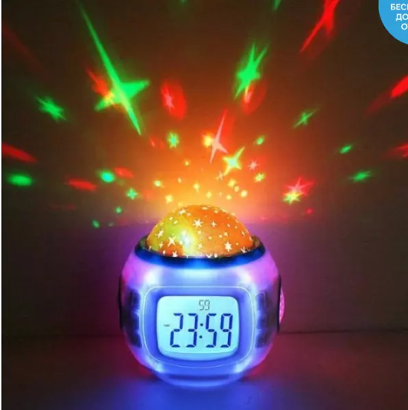 Ночник настольный светильник проектор Звездное небо 1038 с часами и будильником / 4762