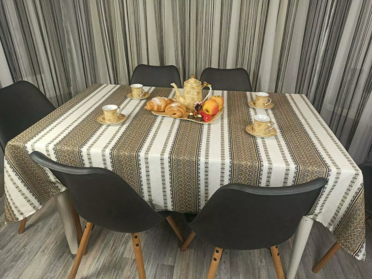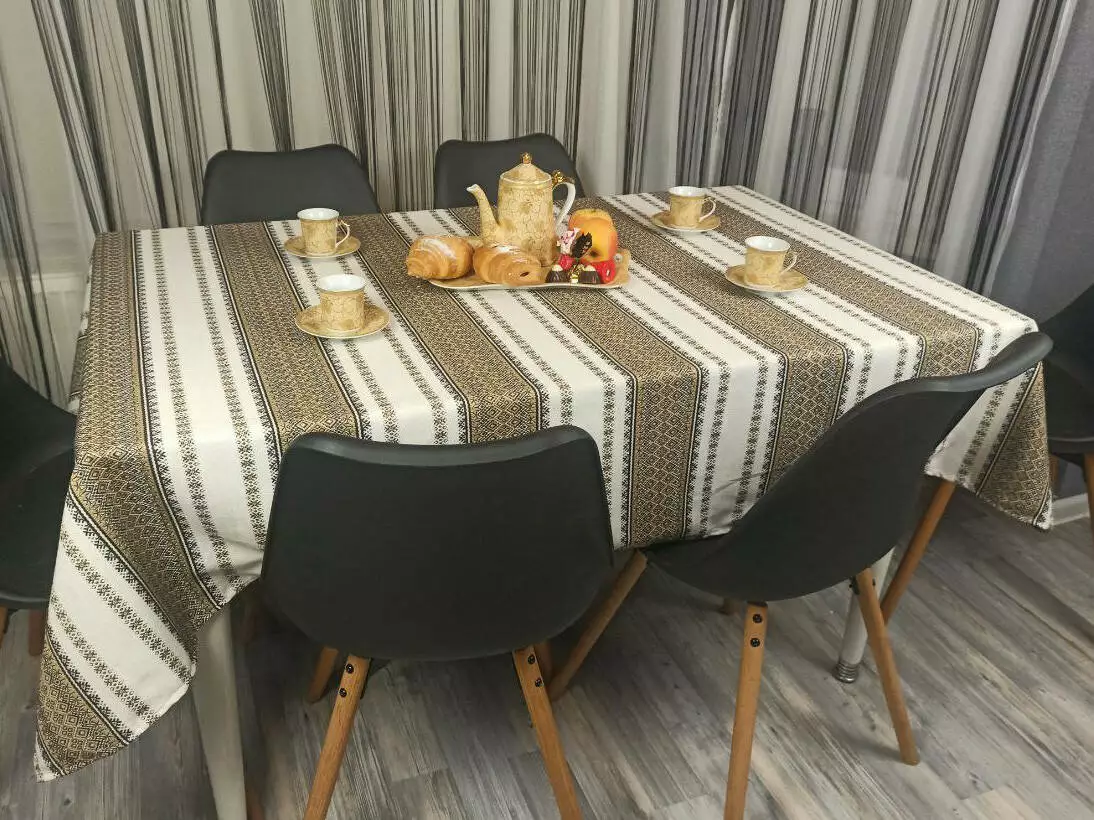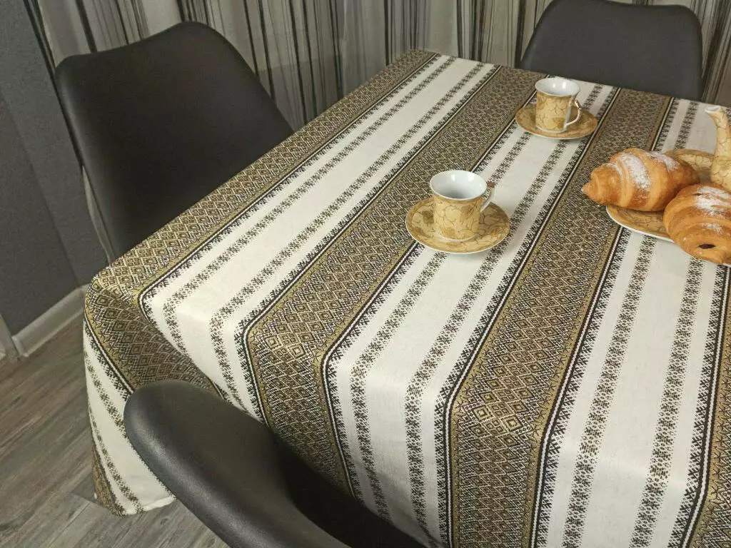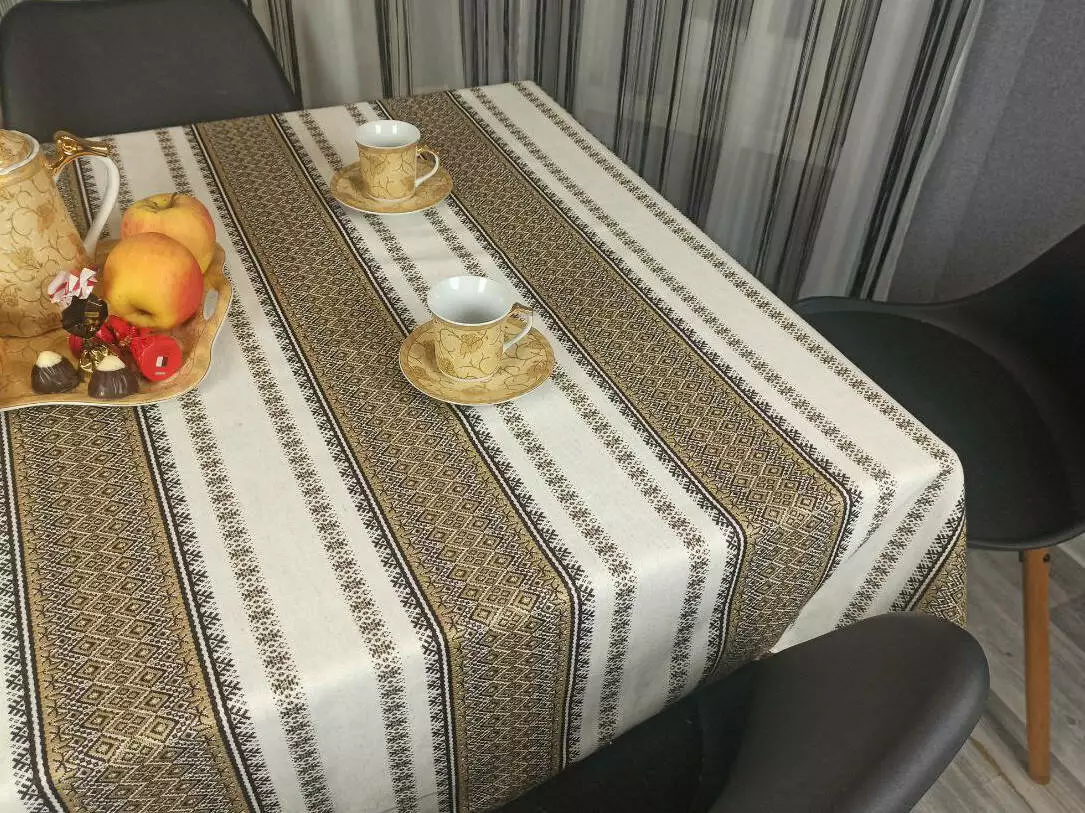 Новорічна скатертина з народним орнаментом 134x145 см, Скатертина, Коричневий