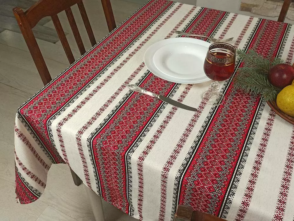 Новорічна скатертина з народним орнаментом 180х145 см, Скатертина, Червоний