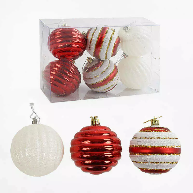 Новорічні прикраси C 67258 (64) 6 штук, кульки, D=8 см, у слюді