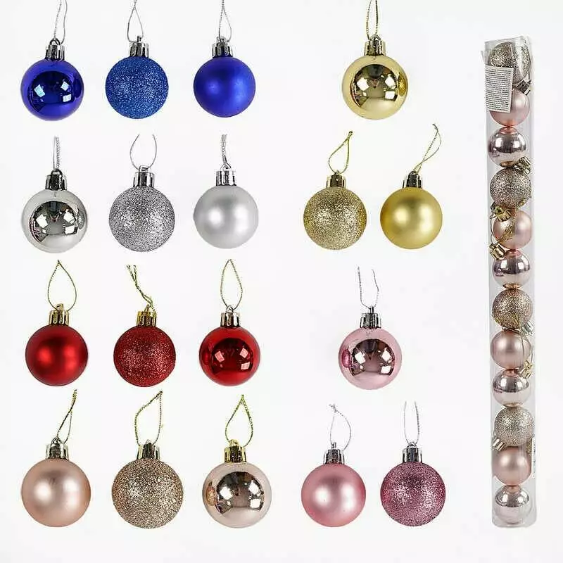 Новорічні прикраси C 67750 (200) 6 видів, 12 штук, кульки, D=4 см, у слюді, ВИДАЄТЬСЯ МІКС ВИДІВ