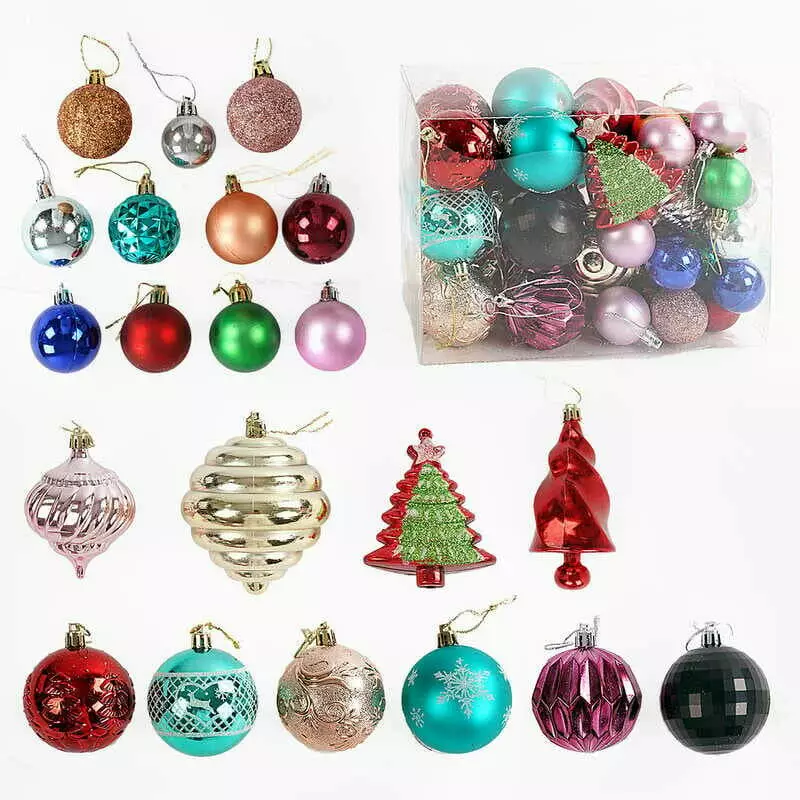 Новорічні прикраси C 67965 (30) 47 штук, кульки, ялинки, у слюді