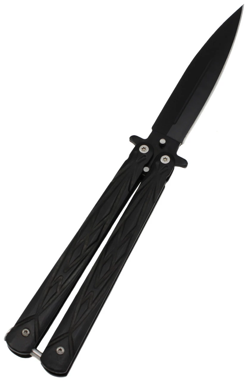 Качественный нож -бабочка в черном цвете. Упакован в коробку.