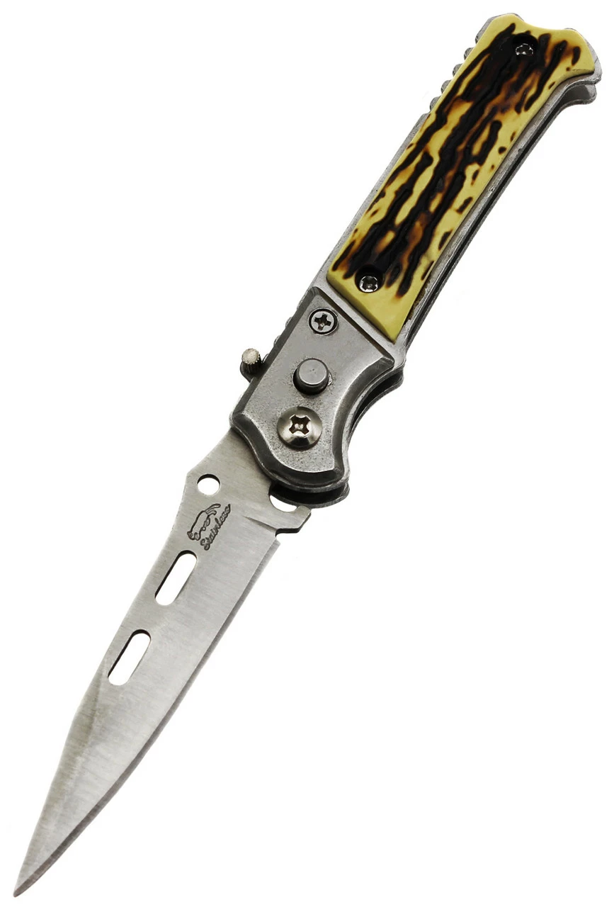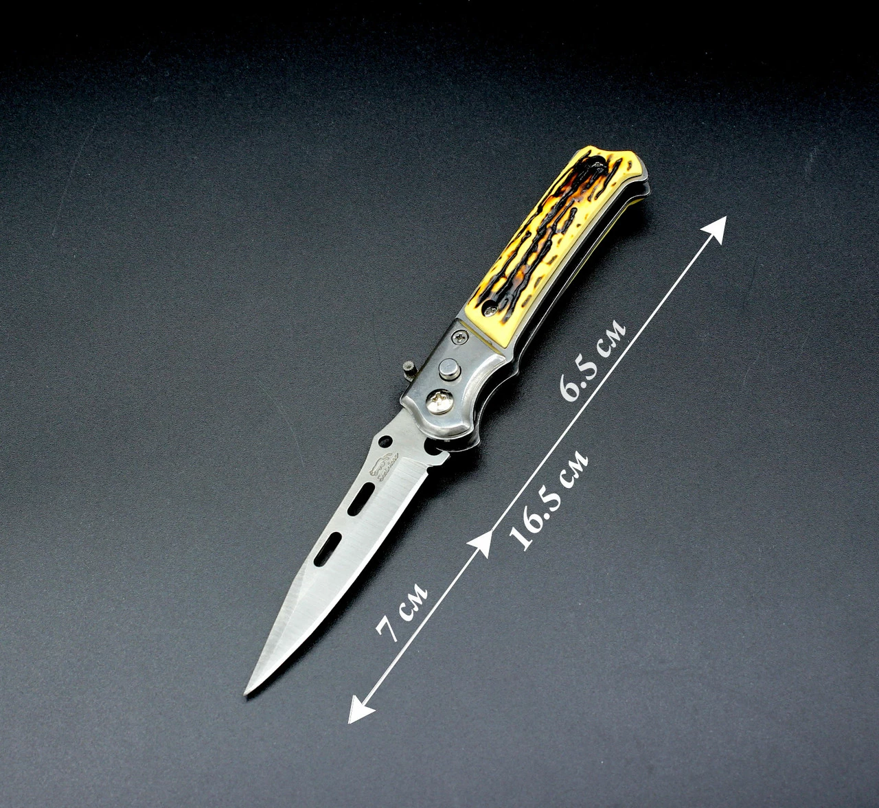 Выкидной качественный нож с прочной рукояткой. Размер в