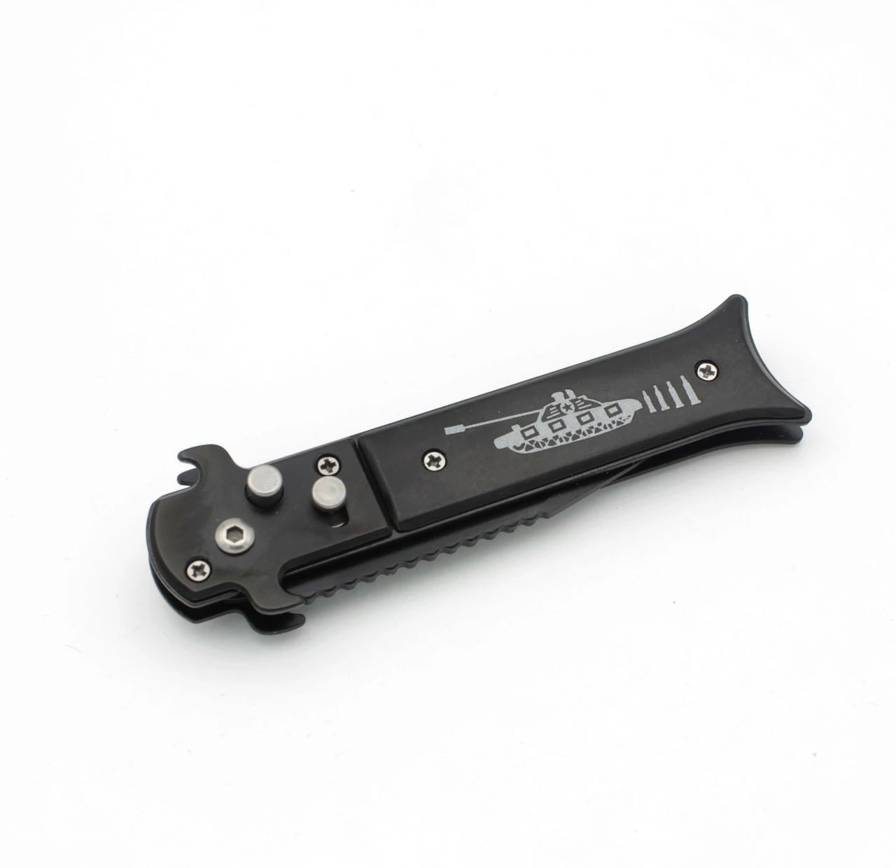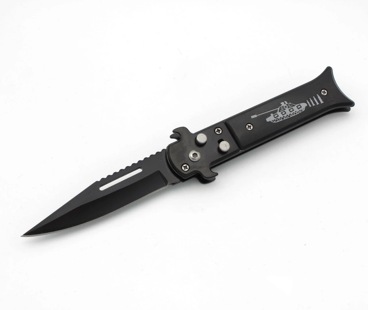 Выкидной нож черный с фиксатором №M34. Длина в разложенном