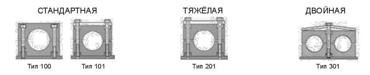 стандартна, важка, подвійна.Стандартно обойми мають профільовану (з