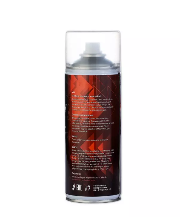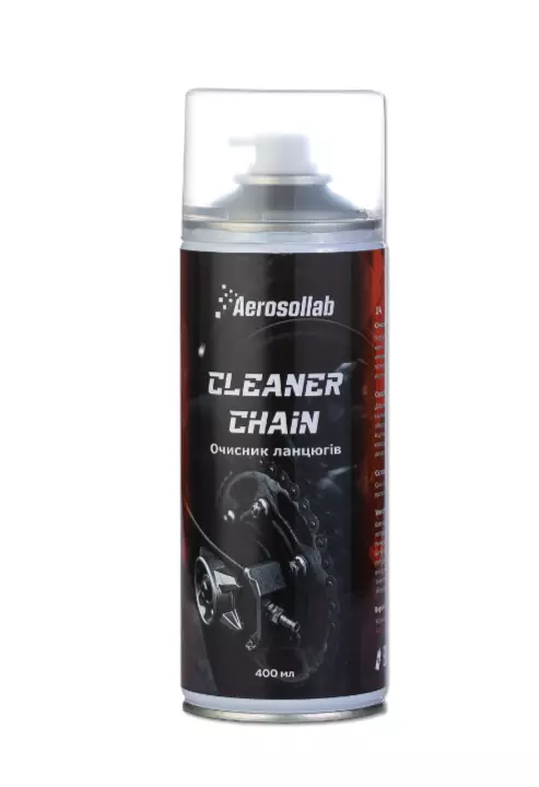 Для использования очистителя цепей Aerosollab достаточно хорошо встряхнуть баллон, распылить его на цепь и оставить на 5 минут. Если цепь сильно загрязнена, то можно использовать неабразивную щетку для ее очистки.