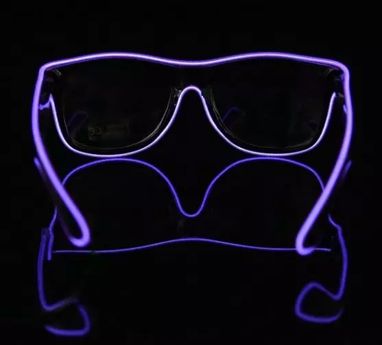 Данные очки оснащены светодиодной неоновой полоской и маленьким удобным блоком питания для двух обычных батареек AA ( пальчиковые 1,5V ) с переключателем режимов свечения. Свечение происходит в трех режимах: обычный статический, вспышка, flash.