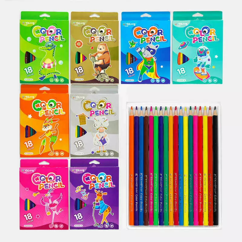 Олівці C 61993 (160) 8 видів, 18 шт в упаковці, 18 кольорів, в коробці, ВИДАЄТЬСЯ ТІЛЬКИ МІКС ВИДІВ
