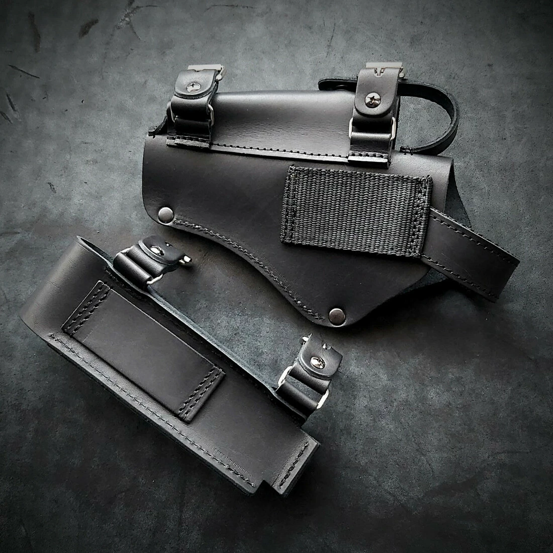 • Регулюється по довжині з обох боків. Кобура з магазином зліва, додатковий магазин праворуч.