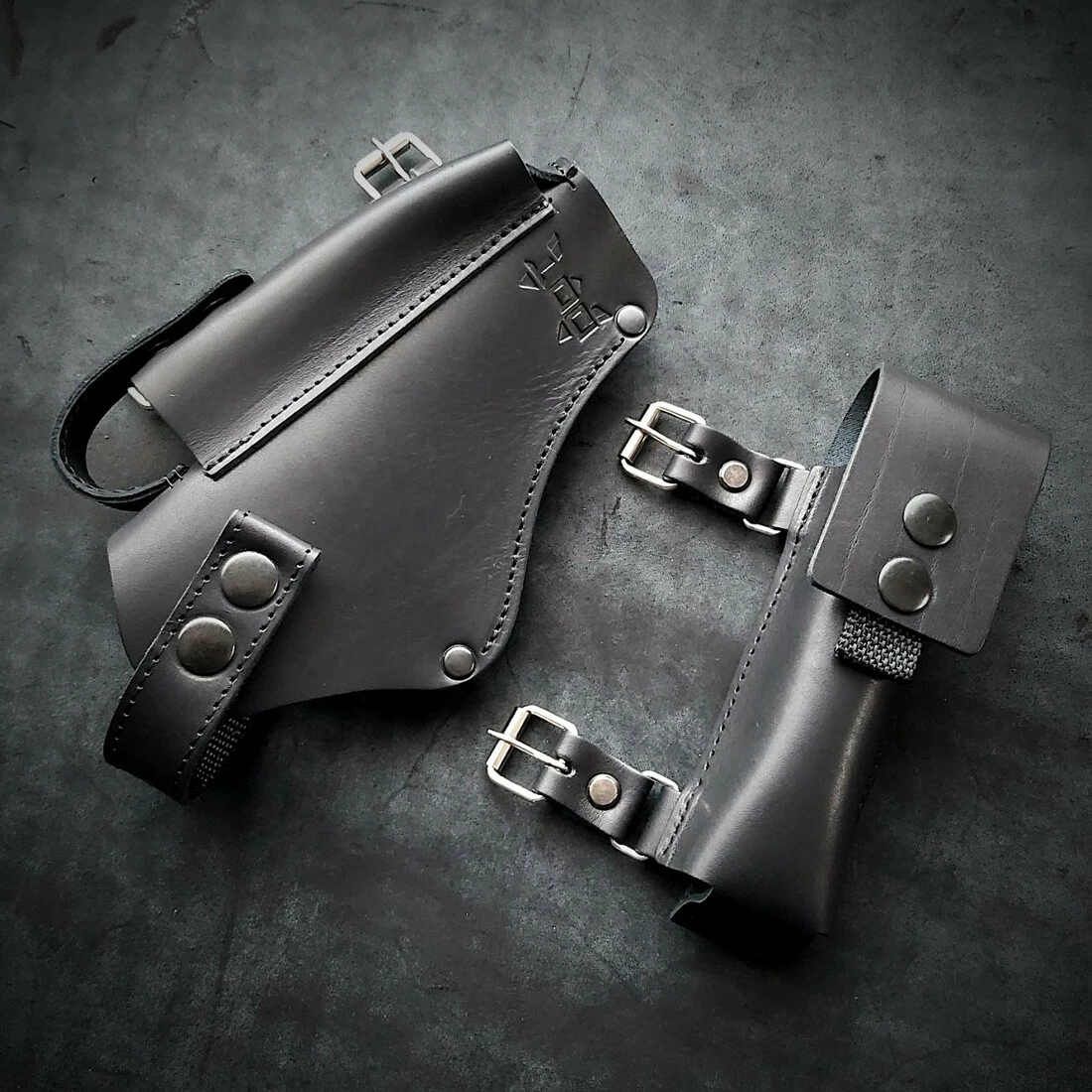 Шкіряна оперативна кобура під АПС із двома магазинами. Виконана із щільної шкіри.