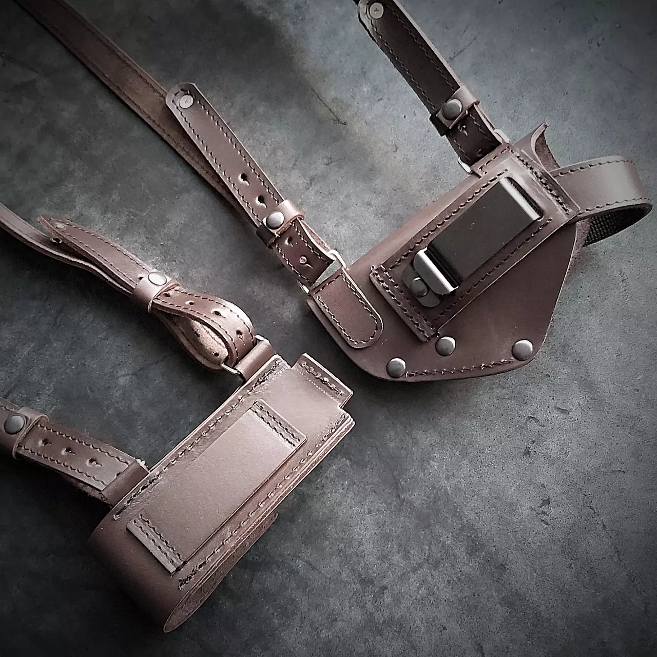 Шкіряна оперативна кобура прихованого носіння під ПМ з паучером під магазин.