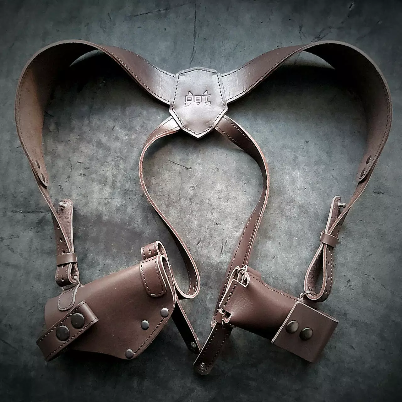 • Кобура ліворуч, паучер праворуч. Кобура і паучер знімаються з наплічної системи і можна носити на ремені шириною 5 см.