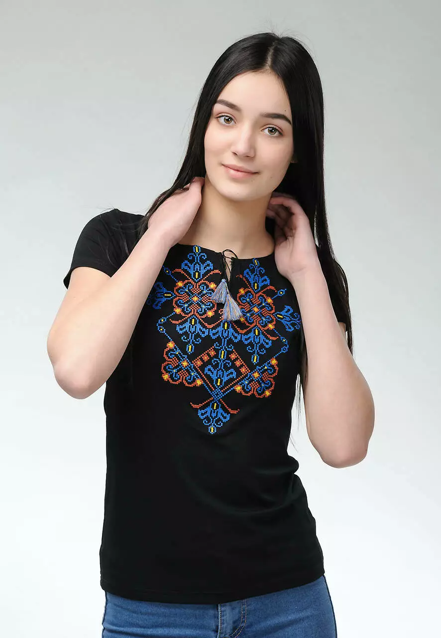 Вишукана вишита футболка на короткий рукав для жінок “Елегія чорна” обов’язково личитиме кожній патріотці. Вона буде доречною у складі буденного образу та для особливого свята. Основна тканина складається із віскози та еластану. Вона ніжна та турботлива до тіла, не викликає алергічних реакцій. Еластан забезпечує еластичність моделі, тому вона так гарно підкреслює Ваші переваги.