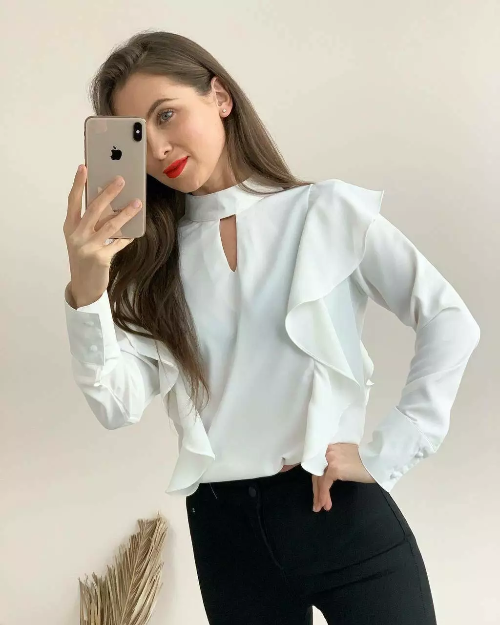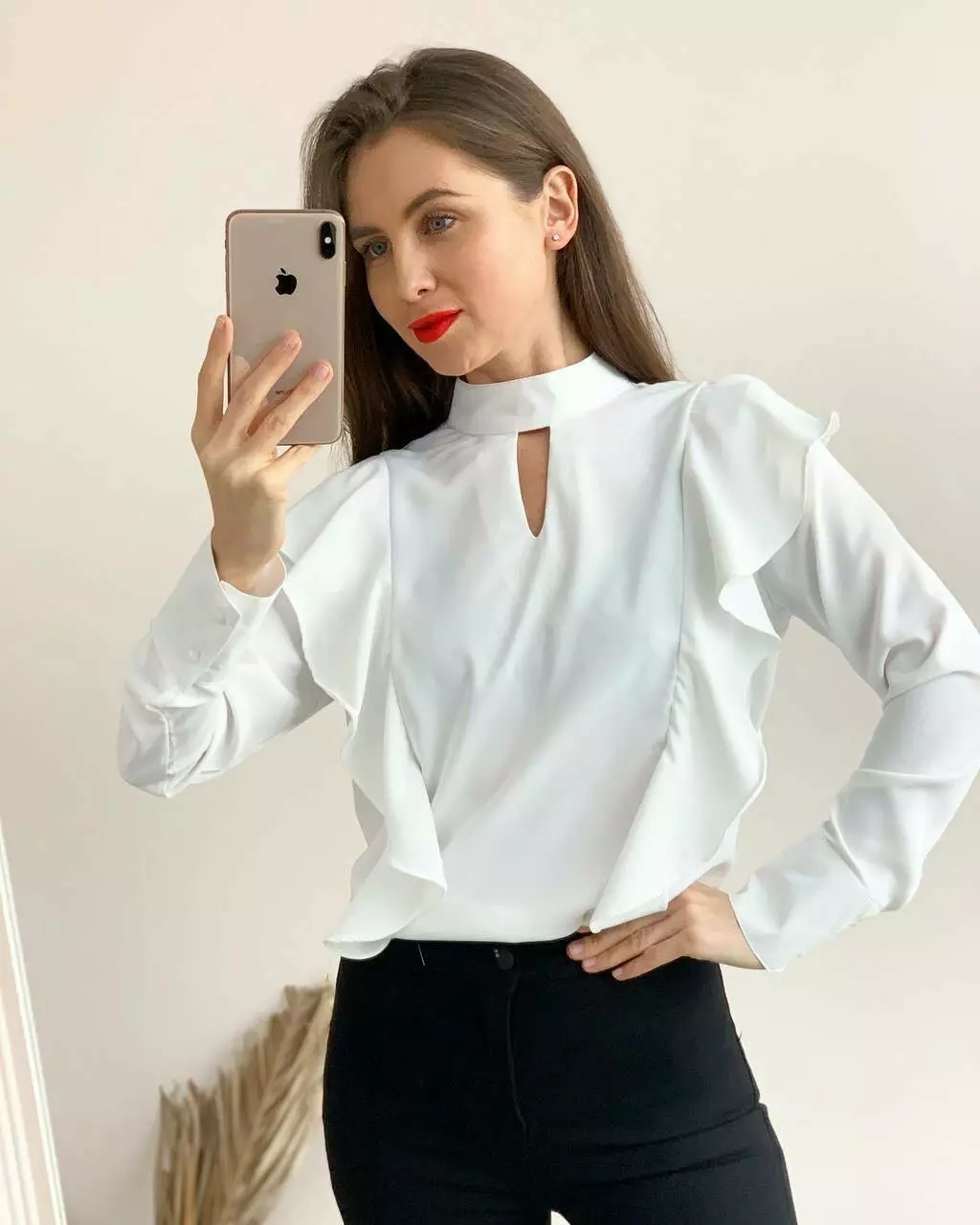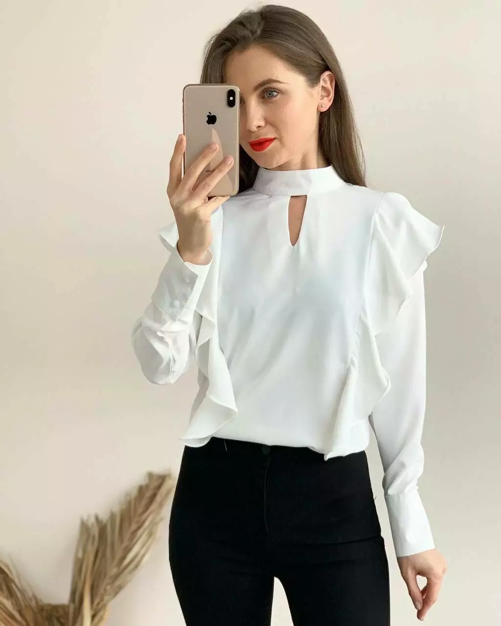 Ошатна жіноча блуза довгий рукав ліхтарик Колір чорний
