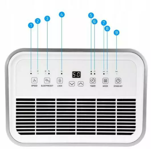 Також на корпусі є лампа, що показує поточний рівень вологості повітря: