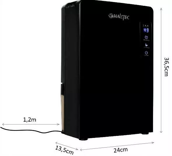 Датчик, встановлений у представленому осушувачі, зчитує поточну вологість приміщення, в якому він знаходиться.