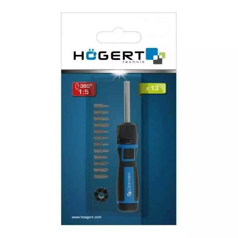 Отвертка со сменными битами и редуктором 1:5 Hogert
