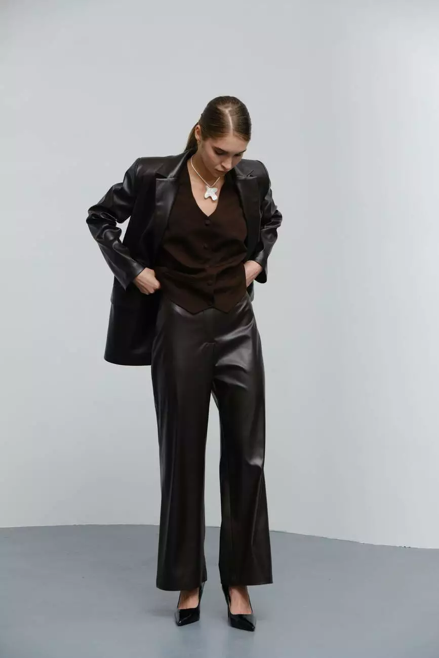 Оверсайз жакет з штучної шкіри DARK СHOCCO
