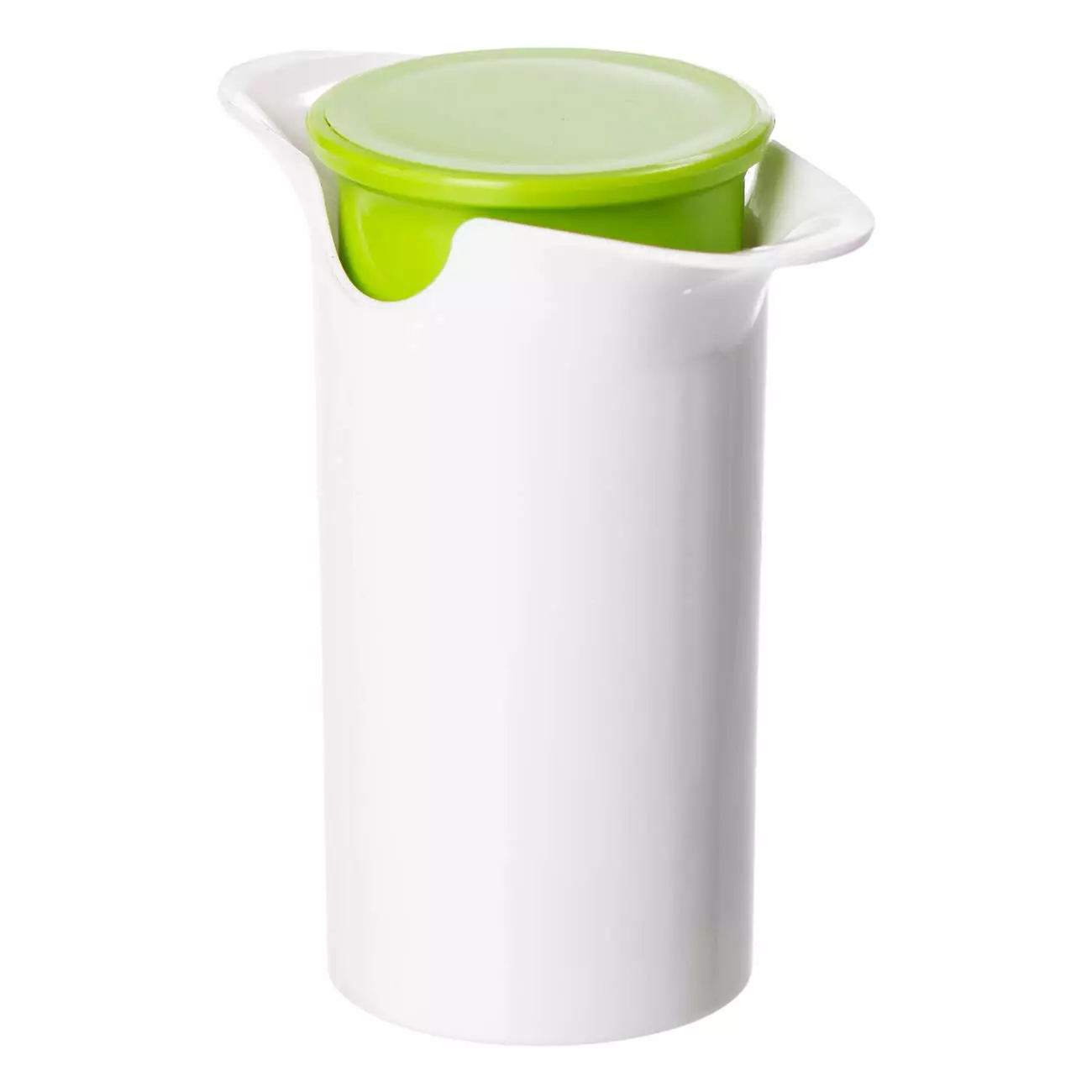Овочерізка виготовлена з харчового пластику, всередині розташовані леза з нержавіючої сталі. Гаджет легко розбирається та миється, компактні розміри дозволяють знайти для неї місце в кухонній скриньці з приладдям.