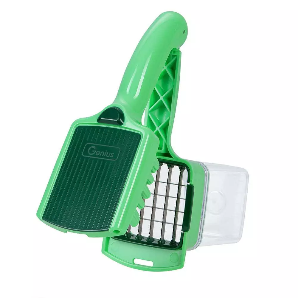 Genius Nicer Dicer Quick Professional — это овощерезка и слайсер в одном лице. Благодаря различным вставкам и пристегивающейся рамке умный кухонный гаджет обеспечивает еще больше инноваций и универсальности при нарезке. Комбинируемые режущие вставки овощерезки Genius сочетают в себе многочисленные варианты нарезки: ломтиками, кубиками, брусочками, ломтиками, соломкой, натертыми, нарезанными ломтиками и многими другими в одном приборе. Откройте для себя кухонный слайсер по-новому. Он сочетает в себе нарезку для лука, нарезку для огурцов, терку для картофеля и многое другое. Нарежьте мягкие или твердые фрукты и овощи, такие как кабачки, имбирь, помидоры, лук, грибы, лимоны и многое другое!