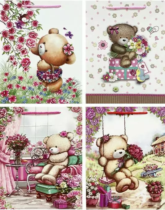 Пакет 18*23*8 "Ведмежа з квітами" (12 шт в пак)