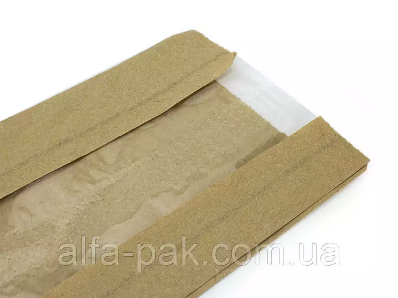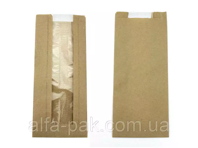 Пакет бумажный саше бурый с центральным окном, 100х240 мм