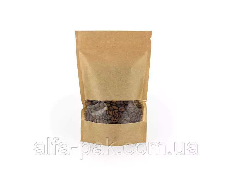 Пакет дой-пак 130х200 мм крафт с прямоугольным окном - удобная и