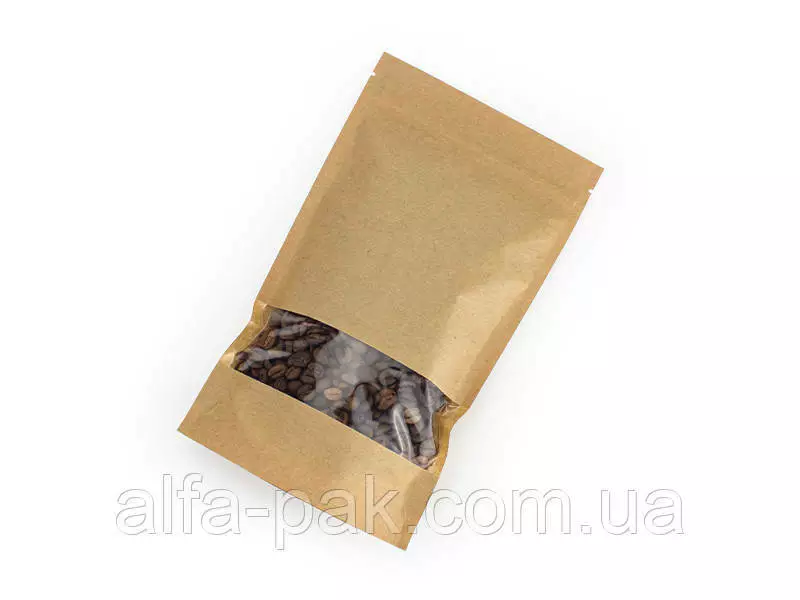 Пакет дой-пак 140х240 мм крафт с прямоугольным окном - удобная и