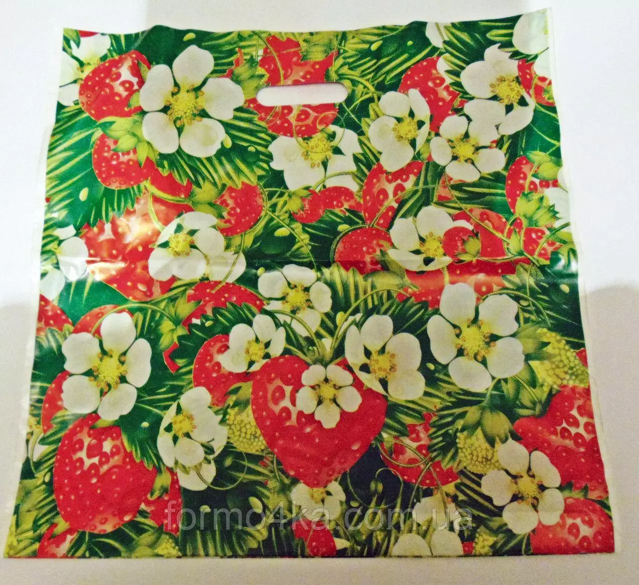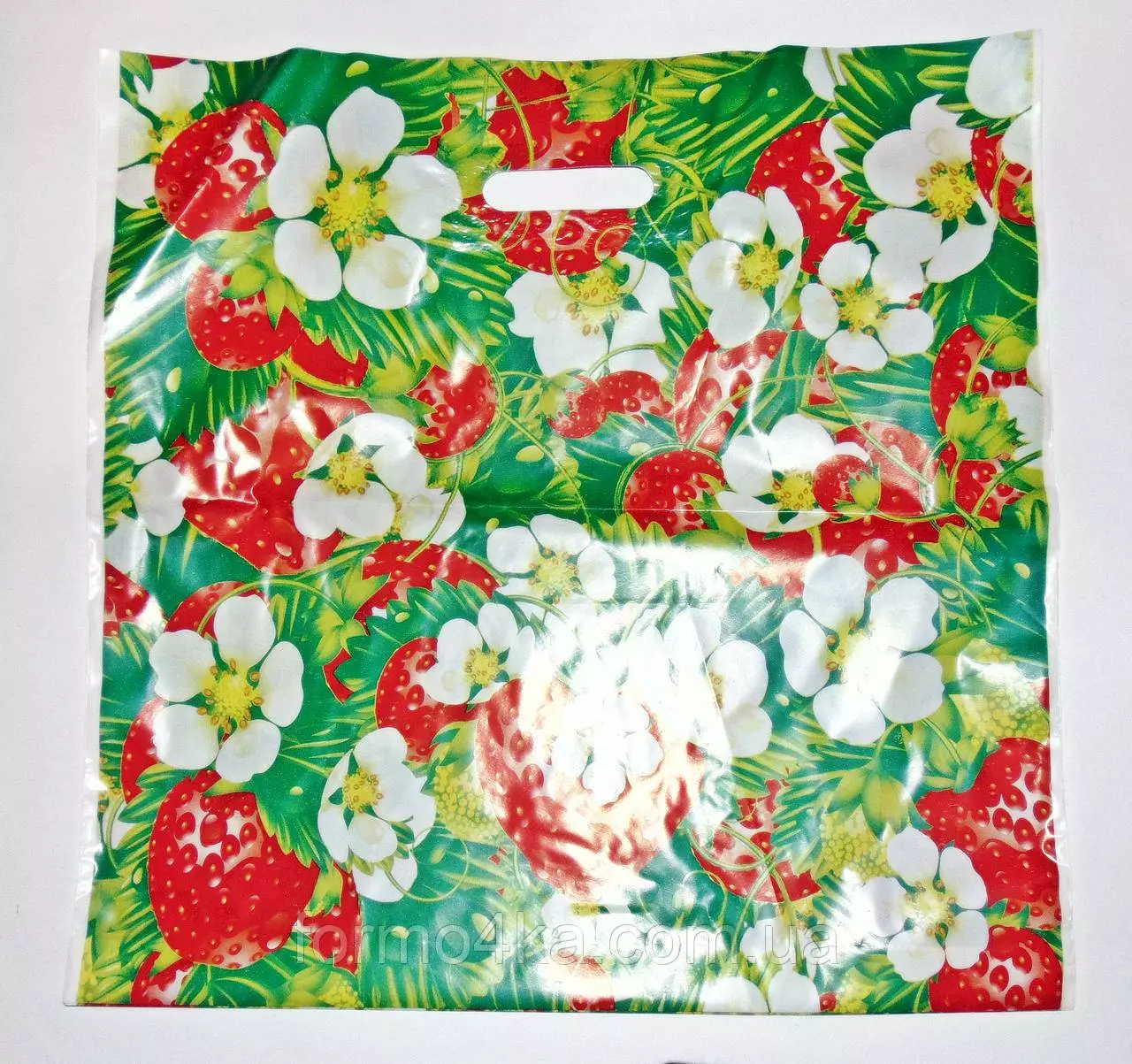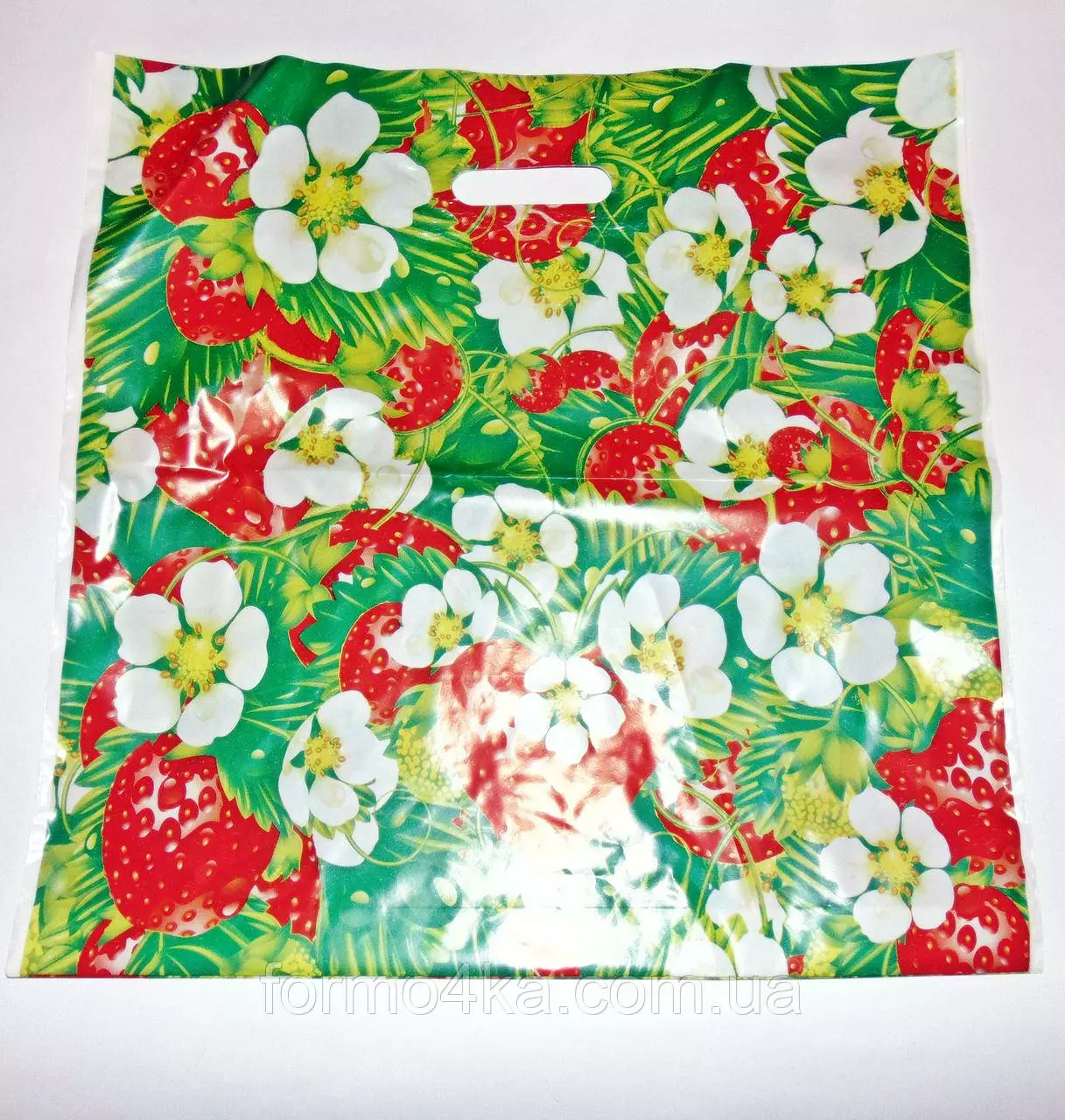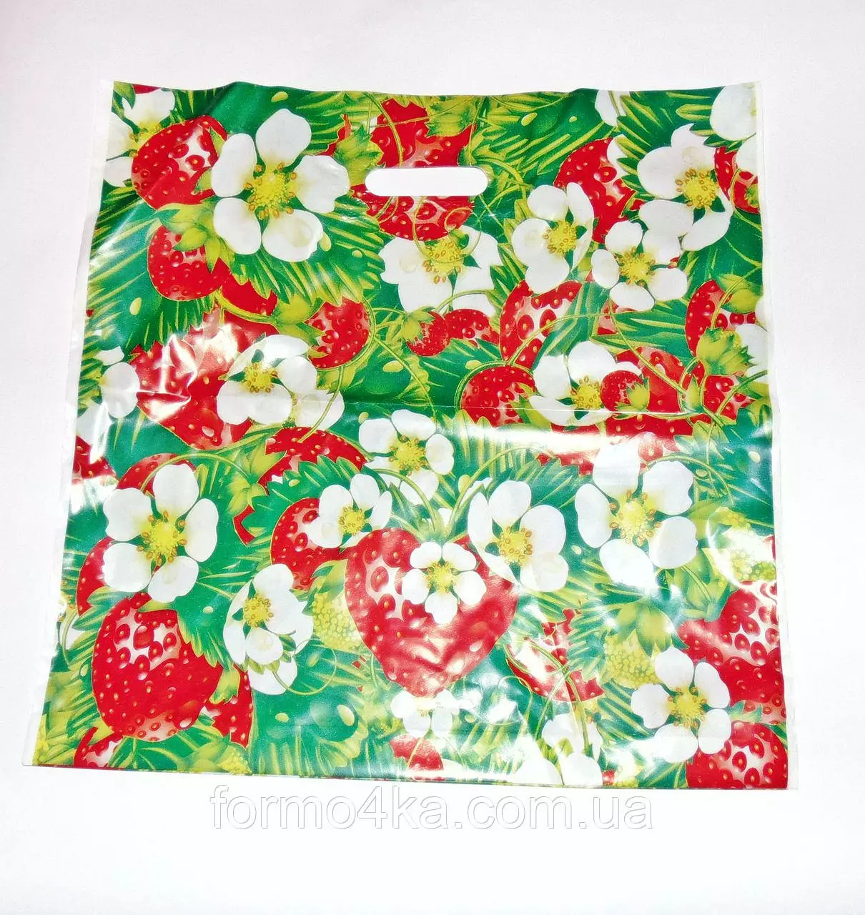 Пакет с прорезной ручкой Клубника 44х44