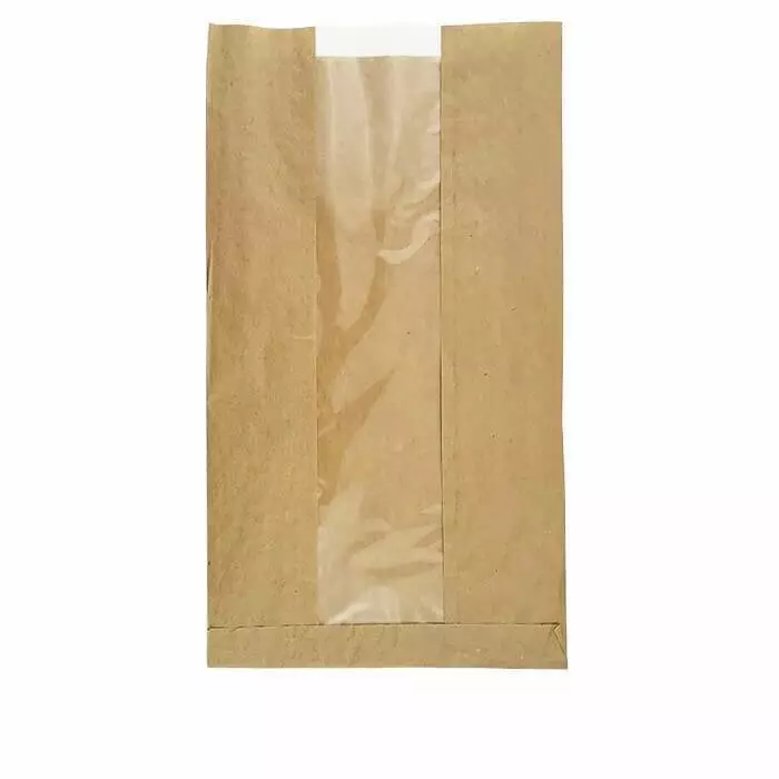 Паперовий пакет-саше з вікном для упаковки 250х400х60 мм бурий без