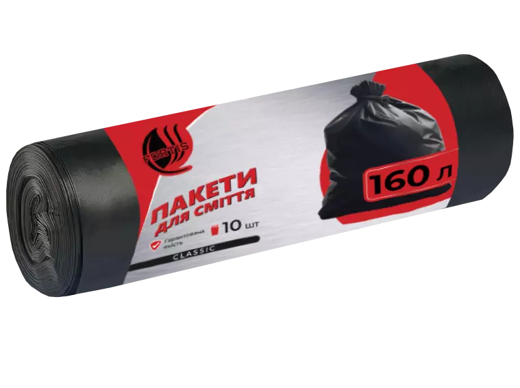 Пакети для сміття 160 л. 20 мікрон 10 шт. в намотці