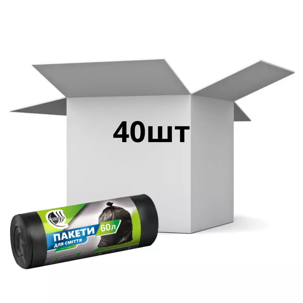Пакети для сміття 60л. Fortis Aktiv (20 шт.) 15 мкм, 40 роликів в упаковці