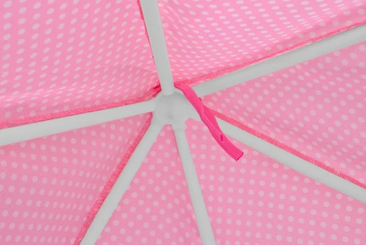 видом. Розовый цвет обшивки и мелкие яркие горошины,